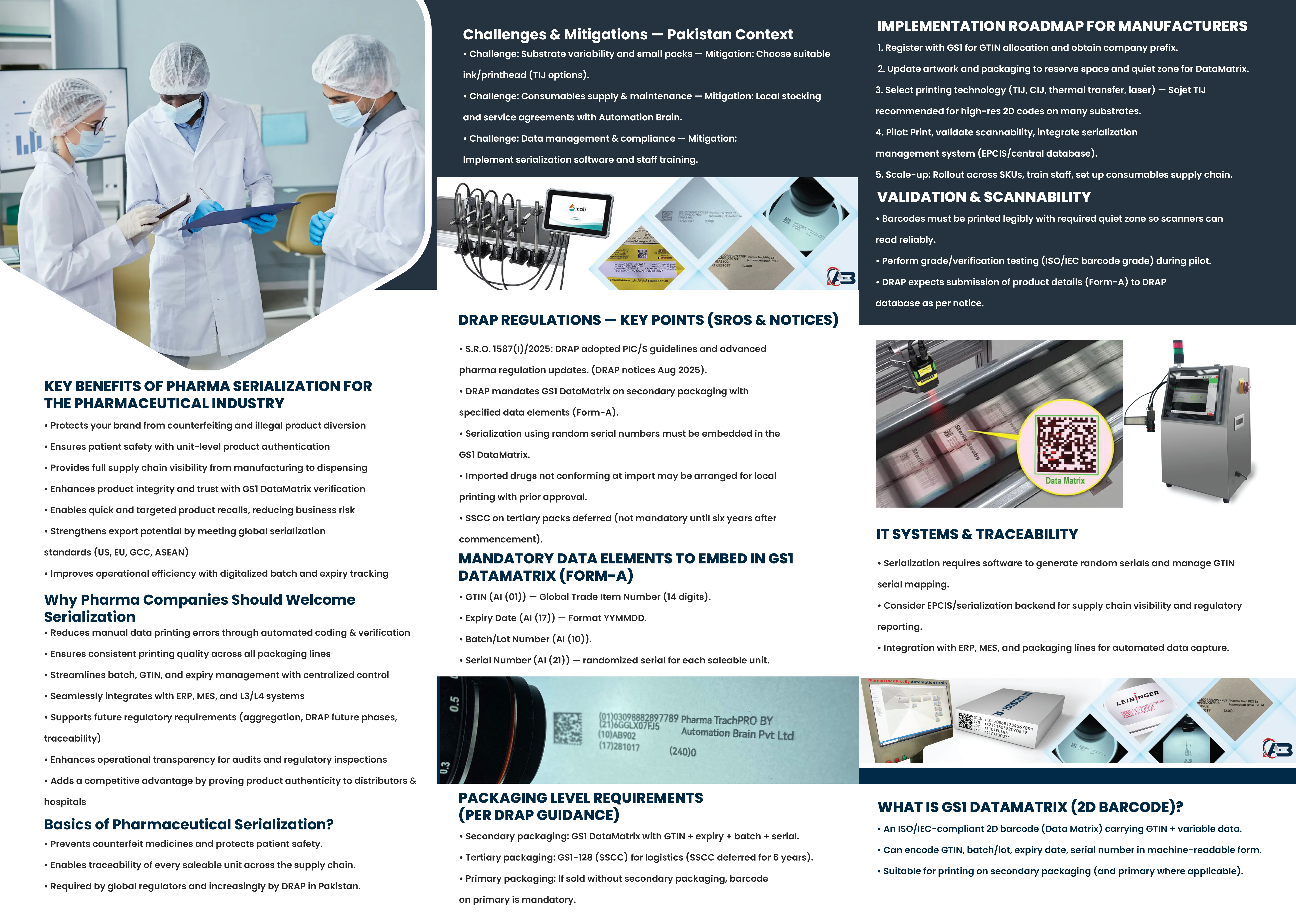 DRAP-Compliant Pharma Serialization And Track & Trace Solutions In Pakistan. 2D Barcode, GS1 Code, And DRISS-Ready Printing Systems By Automation Brain Pvt. Ltd.